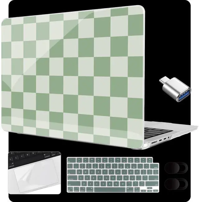 MEEgoodo for MacBook Pro 14 inch Case 2021 2023 2024 Release A3434/A3112/A3401/A3185/A2918/A2992/A2779/A2442 with touch ID & retina display Reminder Note Please kindly check the model number "AXXXX" on the back of the laptop before your purchase, make sure you choose the exact same model number as the listing title stated " A3434/A3112/A3401/A3185/A2918/A2992/A2779/A2442". Not compatible with any other Macbook Pro models Characteristic 1. Case is made of high quality PC material, good heat dissipation performance. Prevent fingerprints, scratches, dirt, smudges and other damages efficiently 2. Case can let you open/close your MacBook all the way and full access to all ports: Thunderbolt 4, Headphone jack, SDXC, HDM1 and Touch ID function 3. The shell is completely removable, easy to install and remove Accessories Feature 1. The webcam cover features a subtle design. Cover your 1080p Face time HD webcam when non-working and prevent network viruses from illegally accessed your personal privacy 2. The matching keyboard cover easy to clean and provides full protection for your MacBook keyboard against dust, dirt, and key wear and more 2. Trackpad protector cover made from triple layer high quality electrostatic material. Protect the laptop trackpad area from scratches and daily wear and tear 3. The type C adapter support OTG function to load USB flash disk directly. This USB Type-C to USB connector also support synchronous charging to your phone and tablet with data transfer What's in the Box 1 14-inch Case + 1 Keyboard Cover + 1 Type C Adapter + 1 Trackpad Protector Cover + 2 Webcam Covers
