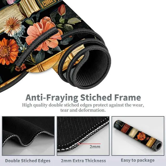 ^^ Natural Rubber Base The soft and dense non-skid nature rubber base keeps this oversize desk pad firmly in place. This long mouse mat remains uniformly flat even over imperfect surfaces. Just immerse your work or games without worrying about the annoying mouse pad movement. ^^ Edge Banding Desgin The full desk mouse pad Sewing frame ensures no friction or sagging. The edge trim design prolongs the service life and prevents the narrow top strip from leaving the base. Reinforced edges prevent deformation or damag ^^ Washable Design Desk Pad A spill-proof coating makes liquids slide right off the surface.