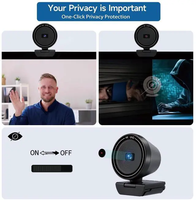 Speaker: This computer camera for desktop with Speaker will amplify the voice of the person speaking across the room, you don't need to bring headphones or sit in front of the webcam for pc all the time, you will be able to hear it when you are moving around. A great choice for your video conference/calls! ^^ 4K