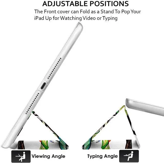 High Quality Lightweight Material & Excellent design makes this case feel very Stylish & Premium & Fully Protects your device against Shock, Abrasion, Scratch, Fingerprint, Slips, Dirt & Corner Damages. ^^ Dual-Angle Viewing/Typing Built-in Dual Angle Viewing/Typing Stand makes it much more comfortable for Typing, watching videos, surfing web & reading while keeping both your Hands Free & avoids any Joint Pain. Allows unobstructed gesture swipes & enhances the beauty of your iPad due to its exclusive Bezel-Free design. Built-in Magnet also helps to hold your iPad steady while using the Multi-Angle Stand feature & prevents your iPad from falling.