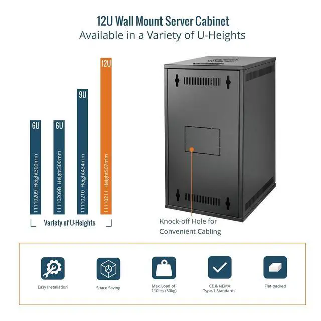Industry Compliant: 12u 10in wall mount server rack meets CE and NEMA Type-1 standards, ideal for network racks, server cabinets, telecom, AV equipment, and professional data closets