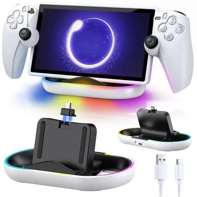 : Elevate your gaming ambiance with a dazzling RGB light at the base of the charging stand, creating a mesmerizing visual experience that sets it apart as an essential part of your PlayStation Portal accessories collection
