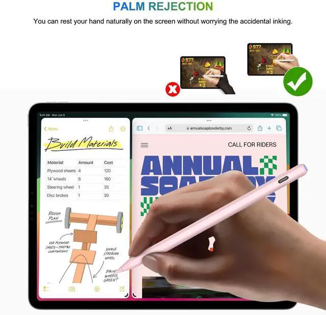 Note: magnetic charging is only for ipad Air 4/5, ipad Mini 6, ipad pro 11/ 12.9 inch available. If you do not know how to confirm the ipad model number, please contact us. ^^ PALM REJECTION -- This pen for ipad 9 generation supports palm rejection, tilt and replace tips. No Bluetooth or app connection is required. Simply click the button above and make a Bluetooth connection to your ipad to write, draw, mark, sign and note with this ipad pen right on your ipad.