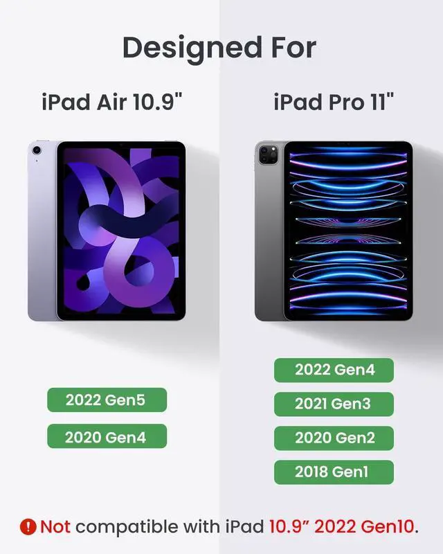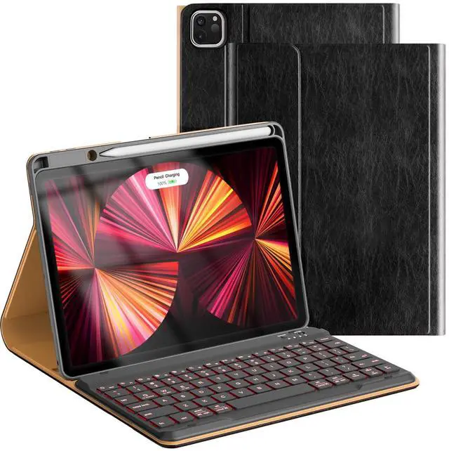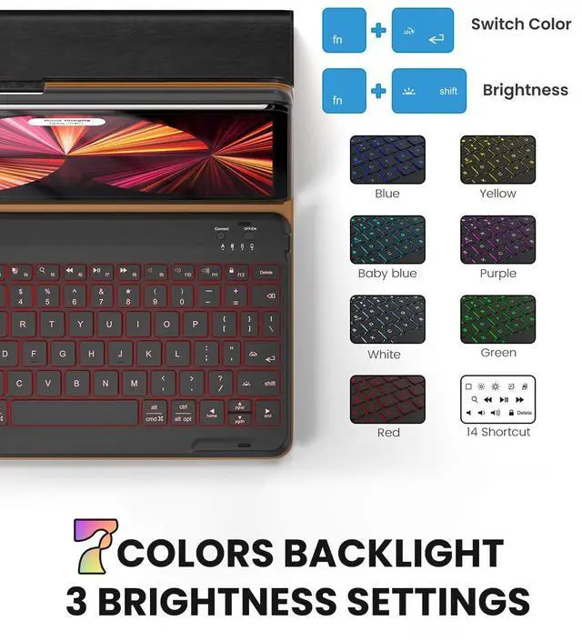 Compatible with iPad Air 5 (2022) 10.9" /Air4 (2020) 10.9" /Pro 11" (2022/2021/2020/2018), including model NO. A2591/A2589/A2588-A2325/A2316/A2324/A2072-A2435/A2761/A2762/A2759-A2377/A2301/A2459/A2460-A2228/A2068/A2230/A2231-A1980/A1934/A1979/A2013. Please kindly check the back of your devices before purchasing ^^: Made with high-quality PU leather, soft microfiber lining, this iPad Keyboard case not only looks great, but it also provides excellent protection against scratches, bumps and drops, making it ideal for busy professionals ^^ Experience the innovative design of our soft backlit keys that create a captivating environment while reducing light pollution. Perfect for nighttime use, it offers 26% longer usage time for extended enjoyment ^^ - This keyboard ensures short key travel with stable built-in Scissor-style structure, fast and quiet typing. SUPPORT Android, Windows and Apple IOS ^^ - The 7-color backlight with 3 adjustable levels of brightness enhances the visibility of the keyboard whether you're in the bedroom, on a plane, or any other low light environment
