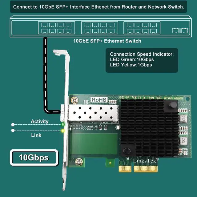1. This X520-DA1 10Gbps SFP+ fiber ports ethernet adapter will provide reliable and unified 10GbE Lan, SAN network connection on Data Centers, Network Attached Storage, Multiple Processor Servers and Desktops PCs for Gaming, 4K HD Video Streaming, Internet Surfing, Storage and Visualization. ^^