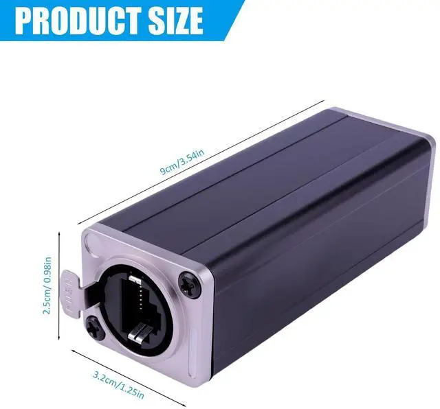 Description: etherCON RJ45 Straight Coupler**Elevate your connectivity with our etherCON RJ45 Straight Coupler, a premium choice that rivals the NE8FF design. Engineered to seamlessly connect Ethernet cables, this coupler is compatible with NE8MC* and any standard RJ45 plugs, making it an ideal solution for cable extension and network applications. Featuring a renowned spring-locking mechanism, our coupler ensures a secure and reliable connection, minimizing the risk of accidental disconnections during critical operations. Whether you're a professional in audio, video, or data transmission, this device is designed to meet the highest standards of performance and durability. Experience enhanced connectivity and peace of mind with the etherCON RJ45 Straight Coupler the perfect partner for your networking needs.