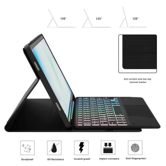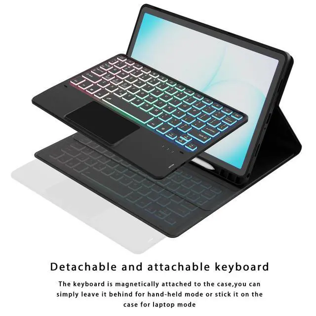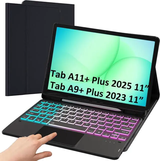 Note: The Tablet and S Pen are NOT included. please verify your device model in "Settings" > "About Tablet" before purchase ^^ Touchpad Keyboard Case for Galaxy Tab A11+ 2025 - Smooth Touch Keyboard Cover Compatible for Samsung Galaxy Tab A9+ Plus/A11+ Plus 11-inch, enjoy an excellent notebook experience, bringing a special feeling to your Samsung Galaxy Tab A11 plus 2025, perfect for travel needs, business or school use, it's very sturdy for when you want to use the A11+ Plus 5G 2025 Tablet for watching Netflix or typing. The keyboard itself is very easy to use, and makes it feel very laptop like ^^ 3 Zone 7 Colors Backlit Keyboard - for Samsung Galaxy Tab A11+ Plus 11-inch tablet case with keyboard Type comfortably using the familiar laptop-like keyboard. with a full row of shortcut keys and well-spaced 3 level backlit keys, 3 brightness levels let you work comfortably on the go, day or night, anytime. You can adjust 3 areas of the keyboard to your favorite color according to your preferences, which makes your keyboard more stylish. It is convenient for operation under dim light, bring you a visual enjoyment ^^ Detachable Keyboard for Tab A11+ Plus 2025 11-inches - PU leather case with keyboard compatible with Samsung Galaxy Tab A11+ Plus 2025.