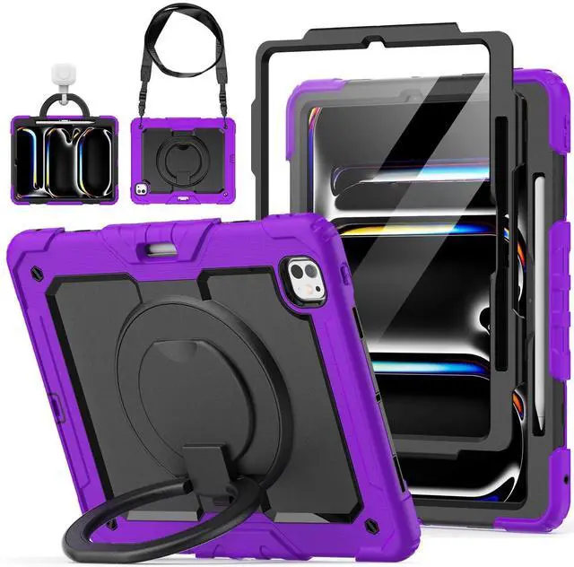 Resistant & Shock Resistant]: The iPad Pro 13 inch case 2025 / 2024 features a silicone outer shell, a hard PC back cover, and a built-in screen protector for superior protection. The thick and soft silicone absorbs impacts from accidental scratches, drops, bumps, slips and shocks ^^ [Multi-functional