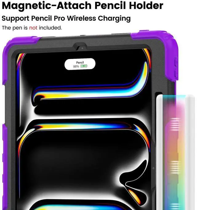 Precise Cutouts]: iPad Pro 13 case with built-in pencil holder to store or charge your pencil in the stylus holder when you're not using it(Only Support Pencil Pro Wireless-Charging), and avoid the losing or breaking your pencil when you're walking or outdoors (Pencil Not Included). Precise cutouts allow easy access to all buttons, speakers, and cameras