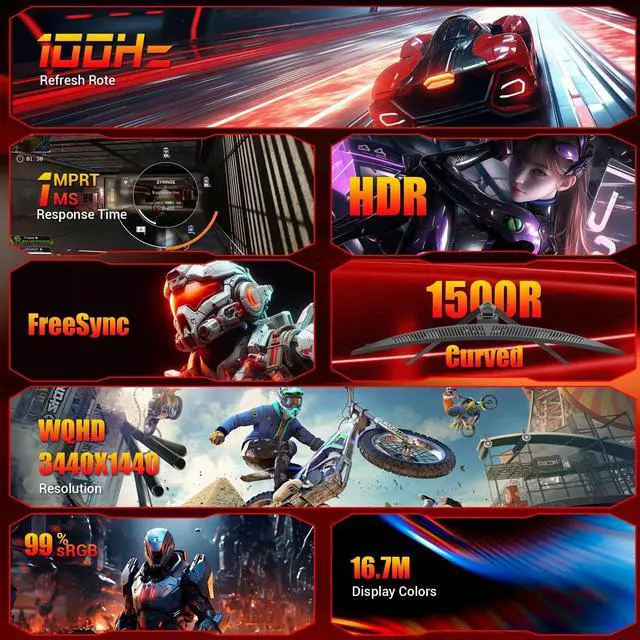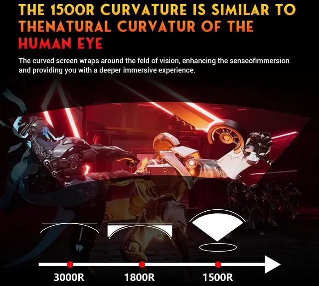 Immersive 49 Ultra-Wide Curved DisplayThe 49-inch 1500R curved screen with a 32:9 ultra-wide ratio and DQHD 51201440 resolution offers an expansive field of view and lifelike visualsperfect for gaming, multitasking, and cinematic experiences. ^^ 165Hz Refresh Rate & AMD FreeSyncEnjoy ultra-smooth and tear-free gameplay with a 144Hz/165Hz refresh rate and AMD FreeSync technology. Designed for competitive gaming, video streaming, and seamless everyday use. ^^ 120% sRGB Color AccuracyDelivers vibrant, true-to-life colors with 120% sRGB coverage, 3000:1 contrast ratio, and 330cd/m brightnessideal for designers, editors, and creators. Eye-care features like low blue light and flicker-free technology minimize eye strain.