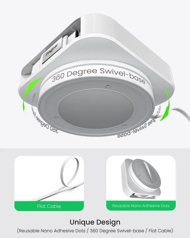 One-Sided Retractable USB C Cable Fasgear USB C retractable cable offers multi-lengths (Range from 14cm to 93cm) to satisfy your various usage needs. With a 3.6 ft (110cm) fixed length and about 3ft (90cm) spooling length, this one-line retractable USB C cable can deploy and retract smoothly. This retractable feature ensures the cords never get tangled together, providing a neat and organized appearance. ^^ 360 Rotatable DesignRetractable USB C Cable can be 360 rotated when you stick this charging cord to anywhere you want with the complimentary nano glue. Thus, usage at multiple angles can be at hand when you rotate the upper cube-shaped reel.