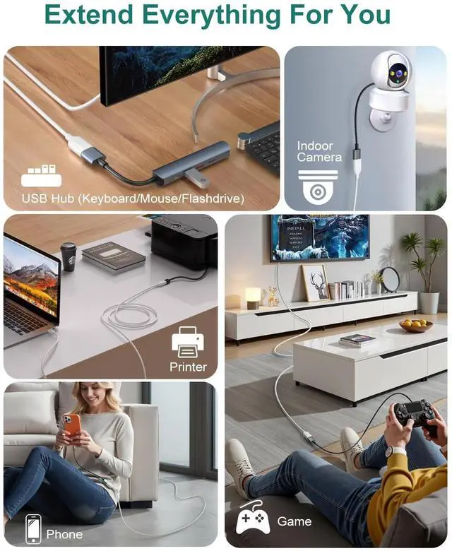 USB Extension Cable: Perfect for lengthening a device connection when charging cable is too short; Keep it at the desktop or anywhere to protect the USB ports of tablet or PC from the possible damage; No more crawling under the desk to plug something into PC.