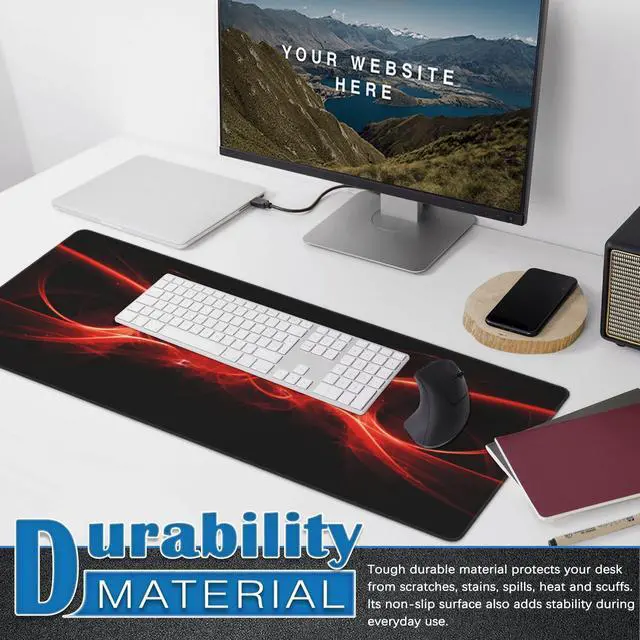 • Large Mouse PadThe desk mouse pad measures 31.5 x 15.7 inch,with 2 mm thickness, big enough to accommodate your computer, laptop, keyboard and other desk items, and still leave plenty of space for your mouse to move all around.