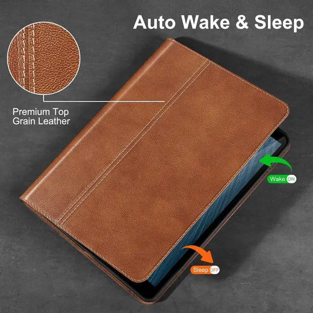 • [MATERIAL&CRAFT] - Exterior is genuine leather protecting camera and tablet body with inner super-fibre lining protecting screen and TPU full package soft inner shell. Full access to all features (Cameras, Speaker, Ports and Buttons); each cutout is tested with relevant tablet before package to make sure working perfectly