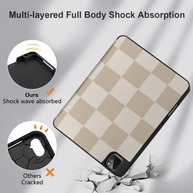 DONGKE Case for 2022/2021/2020/2018 iPad Pro 11 inch Gen 4/3/2/1 - Slim Protective Case - Built in Pencil Holder Support Charging - Trifold Stand & Sleep/Wake Cover- Beige Chessboard