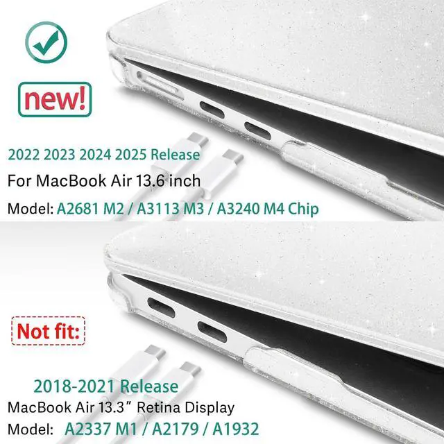 • Designed ONLY to be compatible with MacBook Air 13.6 inch 2025 2024 2023 2022 Release Model: A3240 M4, A3113 M3, A2681 M2 Chip with Liquid Retina display Fits Touch ID. Pls verify Model No. the underside of Notebook before buying.