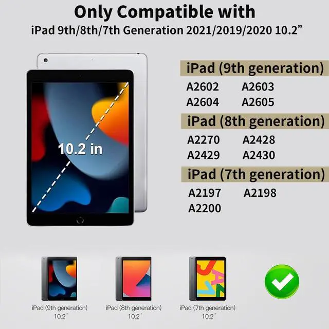 COMPATIBILITY ONLY case for iPad 9th/8th/7th Generation 10.2 inch 2021/2020/2019 released.