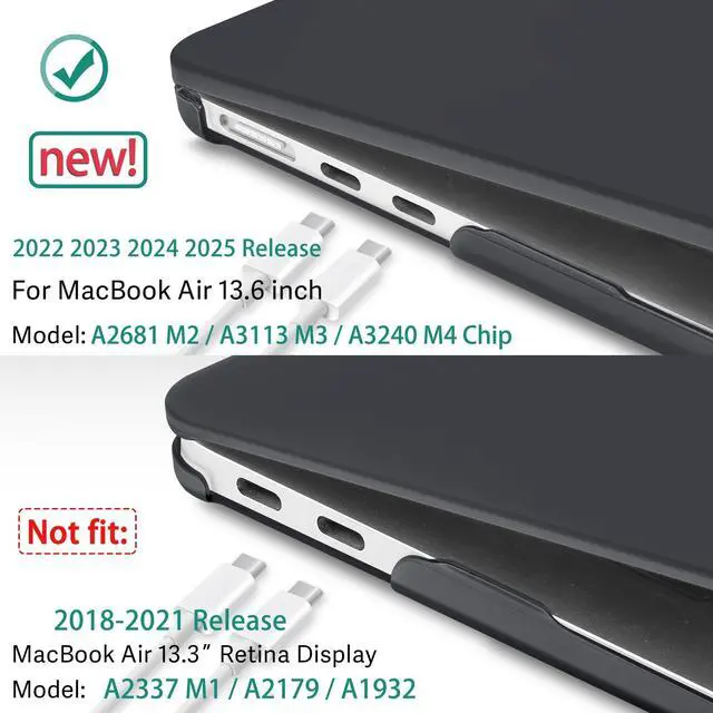 • Designed ONLY to be compatible with MacBook Air 13.6 inch 2025 2024 2023 2022 Release Model: A3240 M4, A3113 M3, A2681 M2 Chip with Liquid Retina display Fits Touch ID. Pls verify Model No. the underside of Notebook before buying.