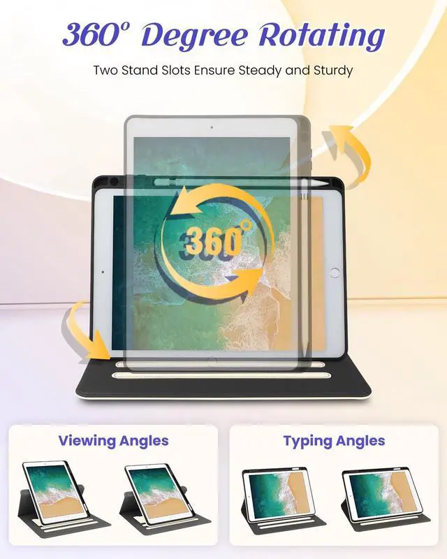 Rotating Stand: This for iPad case 5th generation/for iPad Air 1st generation case/for iPad Pro 9.7 inch case with an functional rotating stand design, supporting your devices to switch between landscape and portrait orientations. While 2 anti-slip strip design allow for multiple horizontal stand angles for comfortable viewing or typing ^^