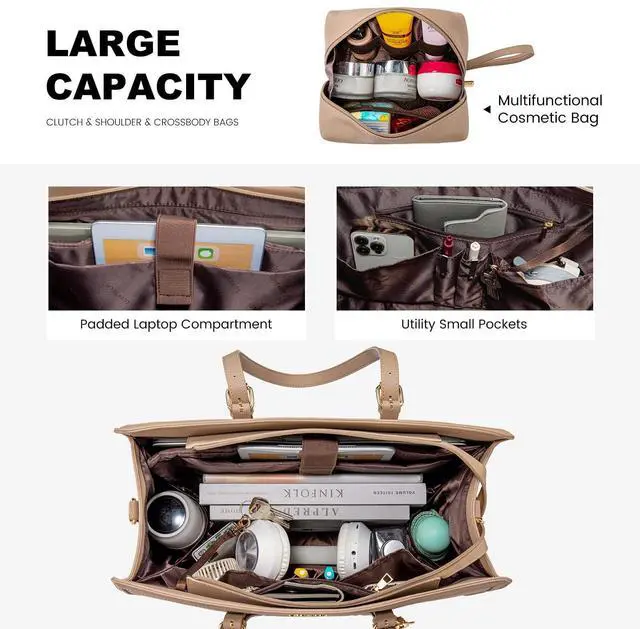 LOVEVOOK Laptop Bag for Women 15.6 inch Lightweight PU Laptop Tote Bag, Large Capacity Computer bag with Clutch Purse for Business, Work, Office, Travel,SchoolCasualLight Brown15.6 Inch