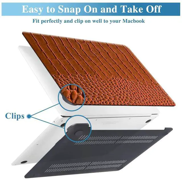 Features: Made of PU leather and PC materials, protecting your laptop from scratches and and everyday damage. This gorgeous crocodile-embossed macbook case has a vibrant and shiny finish that creates a striking visual effect. The rich, textured look of crocodile/alligator skin adds a tactile dimension to your device. Thoughtfully designed with a perfectly positioned cut-out for the logo. Snap-on design, easy to put on and remove. Fully access to all ports and buttons. The additional silicone keyboard skin protecting your keys from dust, spills and crumbs. Bottom vents help keep your laptop cool and four non-slip rubber pads keep your laptop in place. Snug fit, ultra-thin and lightweight, it won't add any noticeable weight or bulk to your laptop. Each piece of faux crocodile leather is crafted with its own unique natural grain. True luxury should be as unique as you are!
