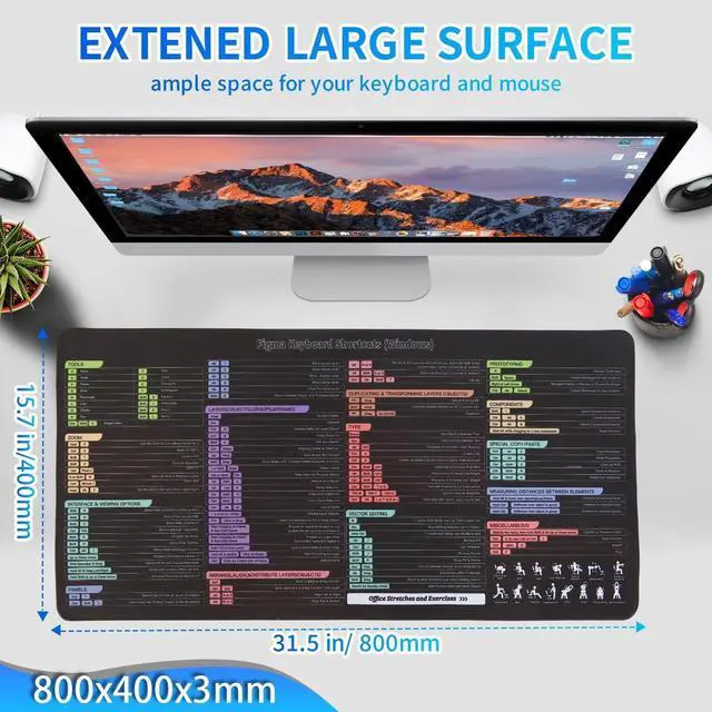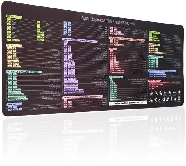 Figma Mousepad, Figma Keyboard Shortcuts Mouse pad, Windows Keyboard Mat, Non-Slip, Stitched Edge, Large Size 31.5" x 15.7"