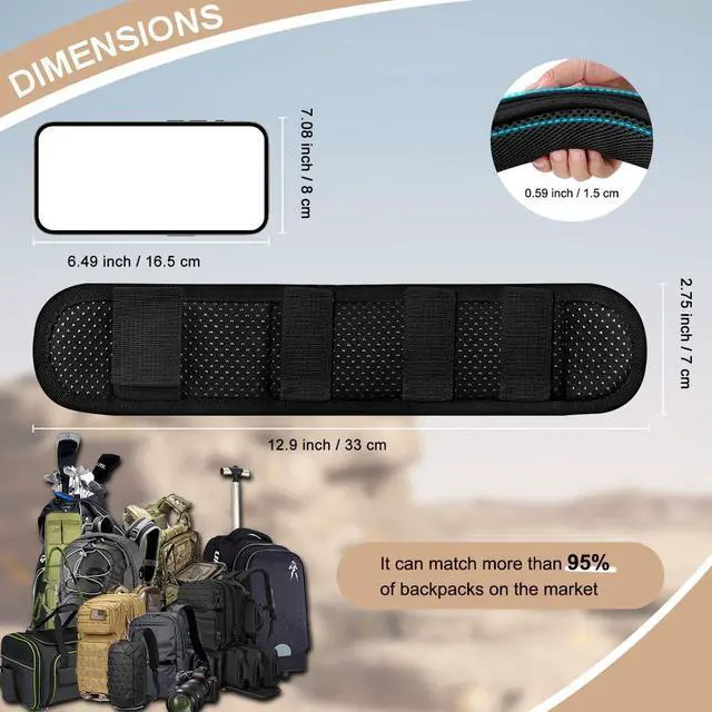 Pad More LongerThe Replacement Shoulder Pad is 33 cm long and 7 cm wide and 1.5 cm thick, Fits Over Most Fabric Guitar Straps, Laptop straps Luggage straps, Corssbody straps etc. ^^ Shoulder ProtectionThe shoulder pad is made of premium memory foam. Adjust with velcro, Detachable shoulder pad cover the entire shoulder. When your backpack is heavy, The replacement shoulder pad cushions the pressure of the backpack and makes your shoulder feel comfortable. ^^ Moisture WickingElastic neoprene and air foam double layers design for shock absorption and breathable and wicks away sweat to allow your shoulder to breath.