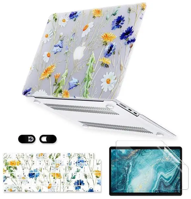 Case for MacBook Pro 13 inch A1502/A1425, 2012-2015 Release with Retina Display (NO CD-ROM), 5 in 1 Transparent Plastic Hard Shell&Keyboard Cover&Screen Protector&Webcam Cover, Floral