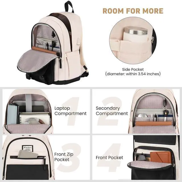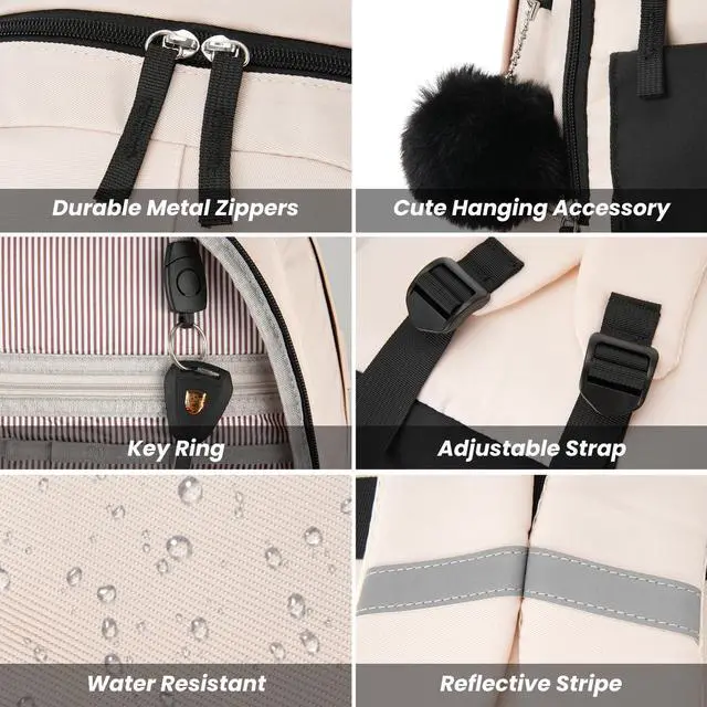 Organized Pockets: This backpack for school has 4 separate different compartments and two side pockets to meet your daily storage. 1 separate laptop compartment includes laptop padded sleeve with elastic belt. The front tool compartment also comes with multiple pockets to provide roomy space for necessities. The front two pockets can hold charge device and other small items, convenient for your daily organization. ^^