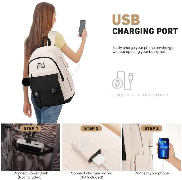 USB Charging Port: Crafted from waterproof, ultra-lightweight, high density premium polyester fabric, light to carry. The zippers closure are used by the premium quality zippers to ensure the long-lasting usage. With built-in charging cable and outside upgraded USB 3.0 charging port, the girls backpack provides a easier way to charge your devices. ^^
