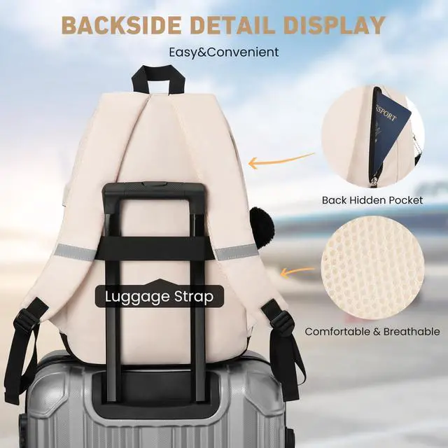 ^^ Comfort & Convenience: The Widen and thicken durable S-shape straps with good breathability and good heat dissipation are well-padded, adjustable and comfortable to carry. The luggage strap allows this cute backpack to attach to luggage/suitcases, making your journey more convenient. Back hidden anti-theft zippered pocket sits up against the wearers body for valuables. ^^ Waterproof Material &