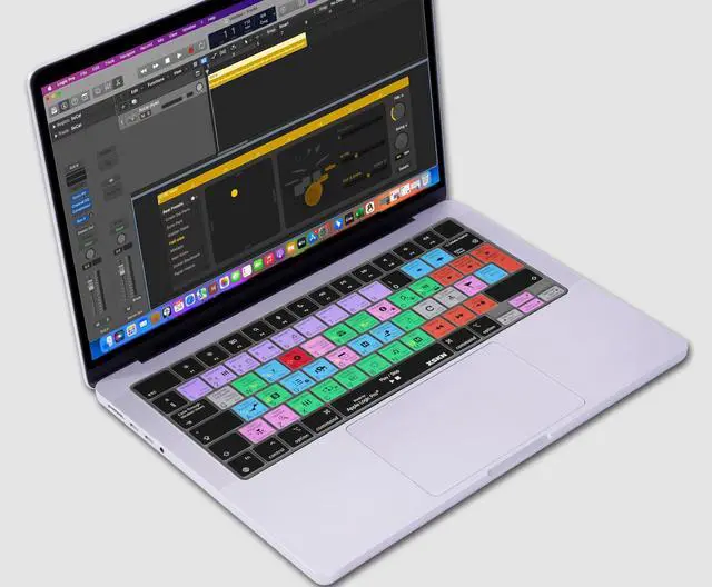 Compatible Devices: for 2021 2022 2023 released Apple M1/M2 Pro/Max M3 chip MacBook Pro 14.2 inch 16.2 inch with touch ID A2442 A2779 A2918 A2992 A2485 A2780 A2991 keyboard and for 2022 2023 2024 MacBook Air 13.6 inch 15.3 inch M2 M3 chip with touch ID A2681 A3113 A2941 A3114 keyboard -- QWERTY character layout EU version, Logic Pro shortcuts in English design-- The keyboard cover itself is transparent, silk-screen hand printed with keys in color block and Logic Pro shortcuts function instruction design-- Do not support backlight shine through, the cap lock light shines through-- Upper side adopted rubber coating, gives you a comfortable soft touch feeling and protect the keyboard cover from losing color-- Lower side is shiny surface, make the keyboard cover fit perfectly on your keyboard without any sticker/glue-- Cleaning by placing in boiling water or washing with soapy water--