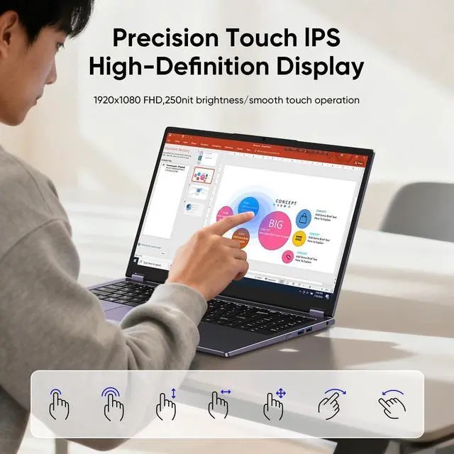 High Performance Business Laptop Powered by In Core i3-8100Y processor (Dual-Core, 3.4GH z Turbo) with In UHD Graphics 615, this lightweight notebook computer delivers smooth performance for work, remote work, and online learning. The 16GB DDR4 RAM and 512GB SSD (expandable to 1TB) ensure fast multitasking and ample storage ^^ Ready for Productivity Comes with pre-activated Window 11 Pro 64-bit and Office Suite (Word, Excel, PowerPoint), making this the perfect work from home laptop or student laptop. The professional operating system includes enhanced security features for business users ^^ Full HD Display & Portable Design The 15.6" Full HD (1920x1080) 16:9 display, while the ultra-thin 19mm profile and lightweight 1.6 kg body make it an ideal travel laptop.