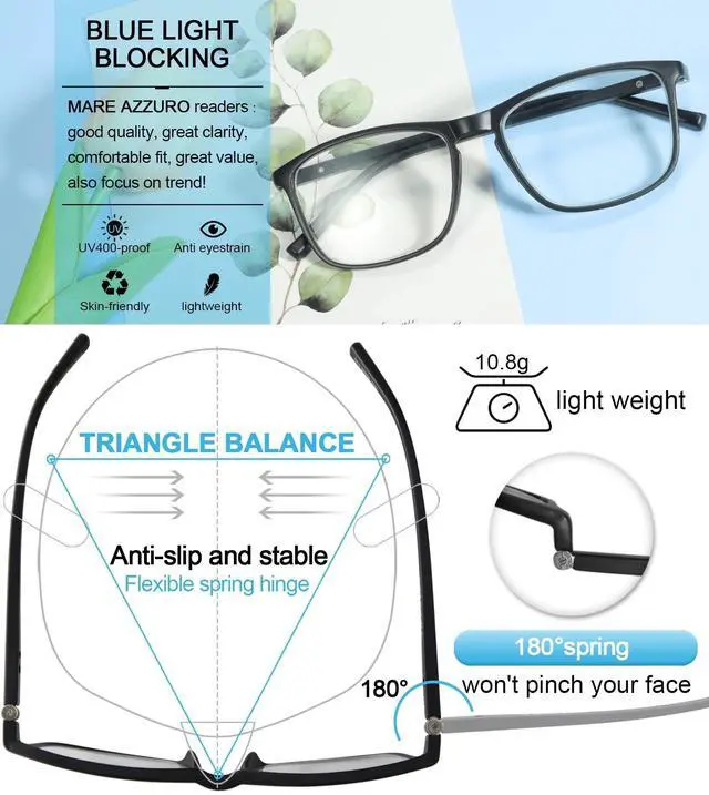 Blue light blocking reading glasses 4.0 - against the high energy blue light from digital screens with UV400 protection & glare reduction. Also 180 flexible ultra-light readers will features your high end taste as a trendy men; with exquisite gifts, also has + 1.00 to + 6.00 accurate magnification to meet your daily needs. ^^ A-class computer reading glasses 4.00 men - filter blue ray to enjoy your digital time(laptop, phone, pad, TV, etc. ), no worry about eye fatigue, blurred vision and headache caused by long-time screen reading, computer working and gaming, to get a better sleep at night.