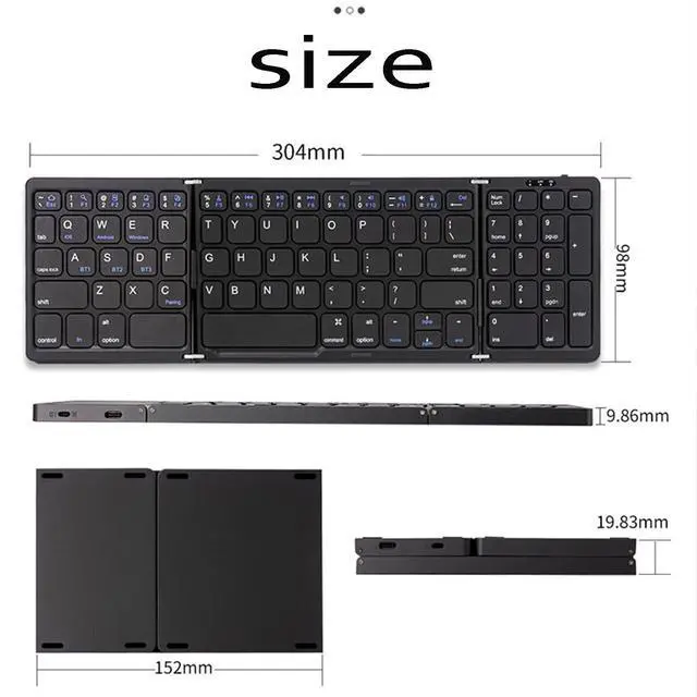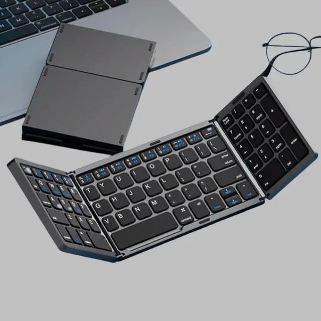Portable Typing Solution: Ditch cramped screens and bulky keyboards! This innovative foldable wireless keyboard combines the full functionality of a standard layout with unmatched portability. Its ingenious design folds neatly in half, slipping effortlessly into your pocket, bag, or even jacket, making it the perfect companion for travelers, remote workers, students, and anyone needing a real keyboard anywhere, anytime.