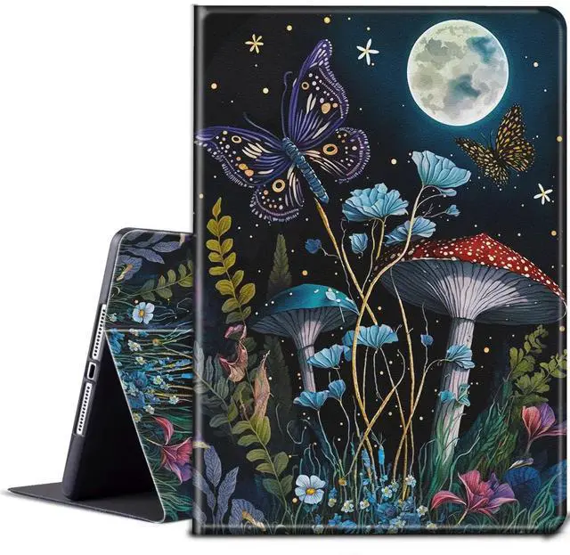 Case for All-New Kindle Paperwhite 12th Generation 7 inch & Colorsoft Signature Edition 2024 with Adjustable Stand & Auto Wake/Sleep Smart Protect PU Leather Cover Tablet Case,Mushroom Butterfly Moon