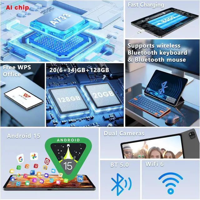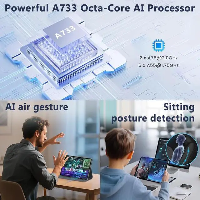 5: Powered by the latest Android 15 system, the tablet improves the performance and efficiency, gives users more control over their data and personal information, and enhances user information protection and accessibility features. Powered by an A733 Octa-Core processor with energy-efficient technology, this Android tablet achieve faster and more stable running and storage speeds. Tablet use more efficient, an excellent companion for life.