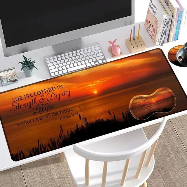 Features: -- Non-toxic, odorless, and harmless to health. --Extended mouse pad protects your desk from scratches, stains, splashes and heat. -- The surface will not wear or deform and is easy to clean. --The wrist rest is ergonomically designed for a soft, cushioned feel. -- Offers a choice of different cute patterns, suitable for both men and women.