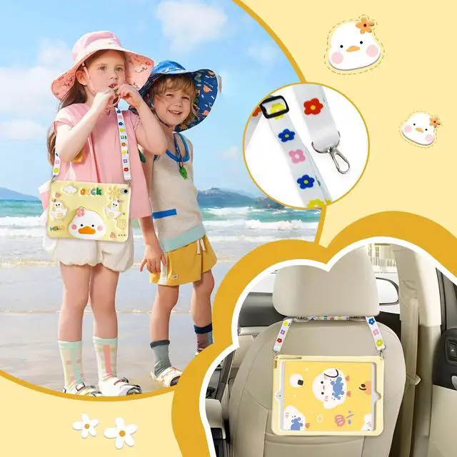 ^^ 3D Duck Kickstand: A foldable 3D duck kickstand on this ipad case 10th generation, adding an adorable appearance to your tablet while also providing a stable and adjustable stand for versatile activities such as reading, typing, browsing websites, or video calling with friends.