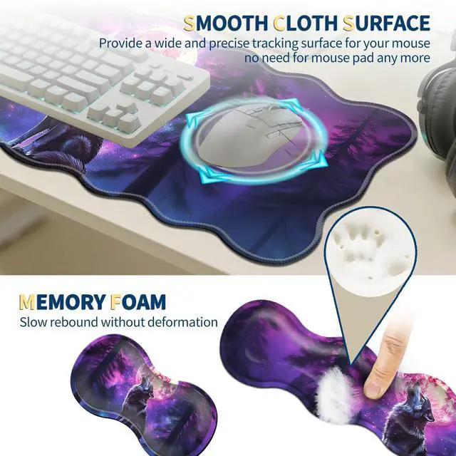 4-IN-1 ERGONOMIC DESK SYSTEM XXL mouse pad ( 31.5" x 11.8" ), memory foam keyboard wrist rest( 17.3" x 3.35" ), mouse wrist cushion( 6.8" x 3.35" ), and spill-resistant coaster(Diameter 3.9" ). Unify your workspace for gaming, office, or study ^^ ERGONOMIC WRIST RELIEF Breathable memory foam distributes pressure, improves circulation, and reduces fatigue during extended use ^^ VIBRANT FADE-RESISTANT DESIGN High-definition dye-sublimation printing ensures long-lasting color brilliance. Choose from gamer, professional, or artistic styles ^^ REINFORCED DURABILITY Triple-stitched edges prevent fraying + non-slip rubber base grips desks securely during intense use ^^ PRECISION & EASY MAINTENANCE Ultra-smooth Lycra surface optimizes mouse tracking.