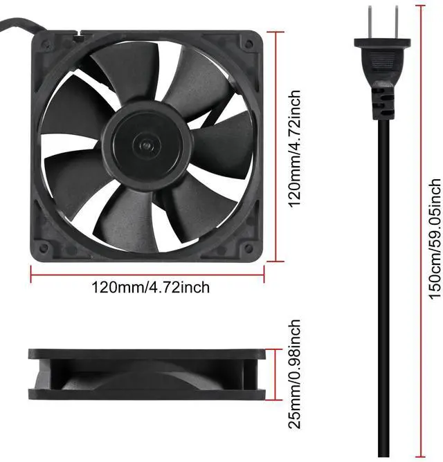 4: Brushless DC motor / fan driven by AC source input. The EC fan is more windy than the AC fan, more energy efficient, and can work in the 70V - 270V voltage range, such as work under on 110V, 115, 120V, 220V, 240V, the fan speed are the same. Features120 x 120 x 25 mm ( 4.72 x 4.72 x 1 in.