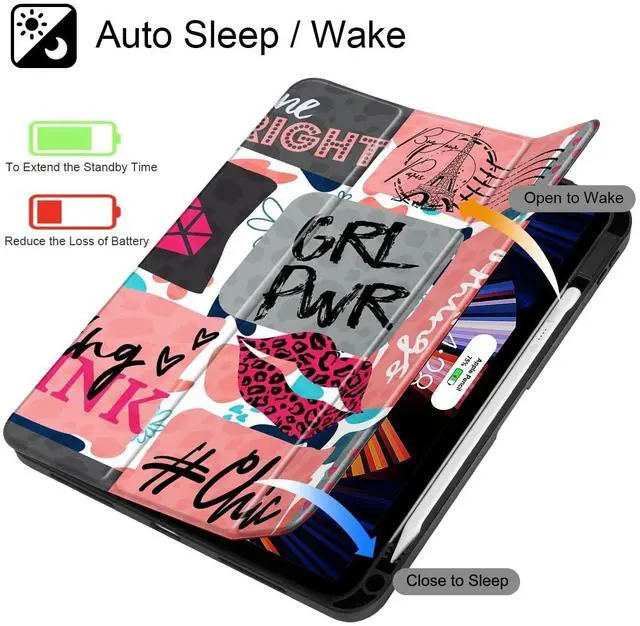 ICEKEE for iPad Air 11 Inch Case 7th/6th Gen (M3/M2) 2025/2024, for iPad Air 5th/4th Gen Case 10.9 Inch 2022/2020, Slim Stand Protective Cover with Hard Clear Back Shell Cover, Girly Graffiti