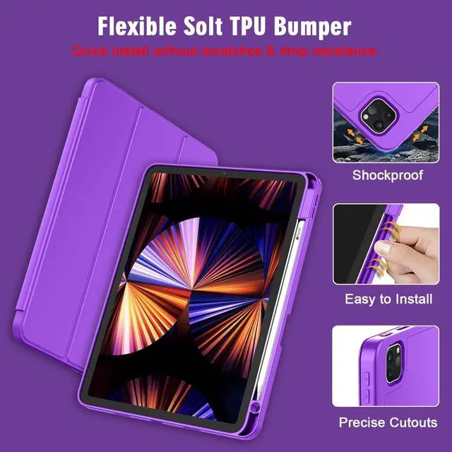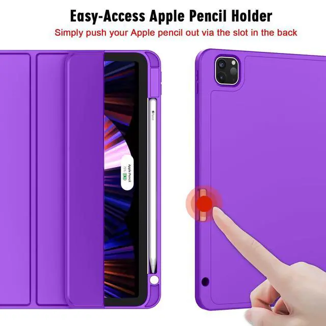 ZryXal New iPad Pro 11 Inch Case 2022(4th Gen)/2021(3rd Gen)/2020(2nd Gen) with Pencil Holder,Smart iPad Case [Support Touch ID and Auto Wake/Sleep] with Auto 2nd Gen Pencil Charging (Grape Purple)
