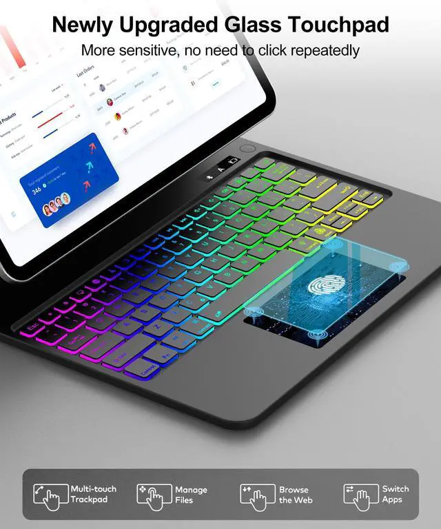 • Glass Trackpad Excellence - Experience MacBook-level precision with our upgraded glass trackpadsmoother and more durable than plastic competitors. Full multi-touch gestures on this magic keyboard ipad air 13 inch let you edit, scroll, and zoom seamlessly. Perfect for your ipad pro 12.9 case with keyboard.