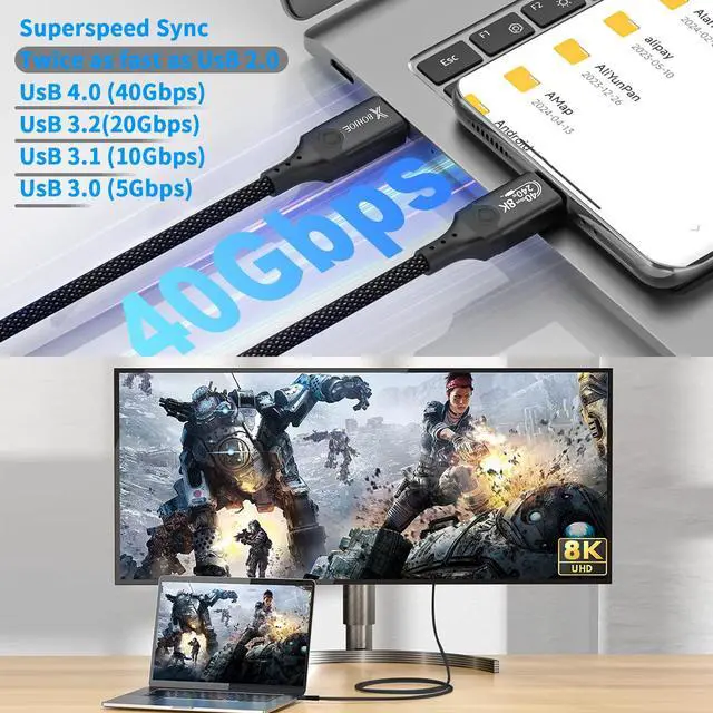 (Note: Devices must support 40Gbps for optimal speeds) ^^ Visuals with 8K/5K Display Support This for Thunderbolt4 cable Stream, work, or present in ultra-sharp 8K/5K 60Hz resolution or dual 4K setups. Ideal for home theaters, multitasking professionals, or design studios that demand immersive detail.