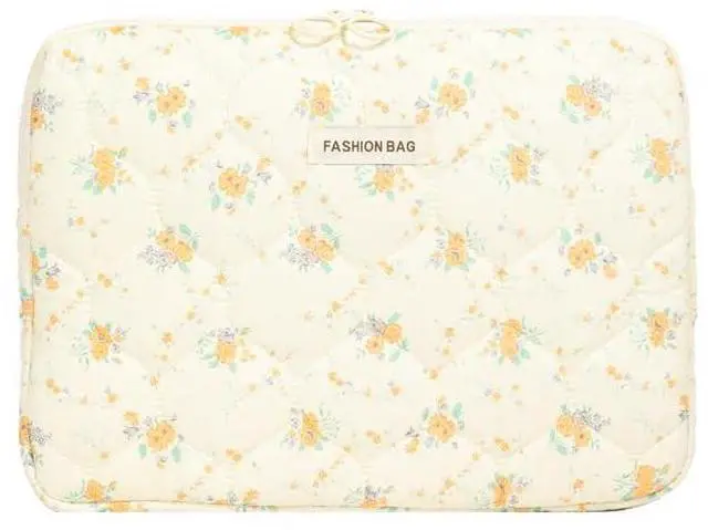 Attria Fairycore Laptop Case for Women Floral Carrying Tablet Bag Cover Puffy Quilted Computer Liner Bag 11-15.6 Inch (13-14 Inch,Yellow)
