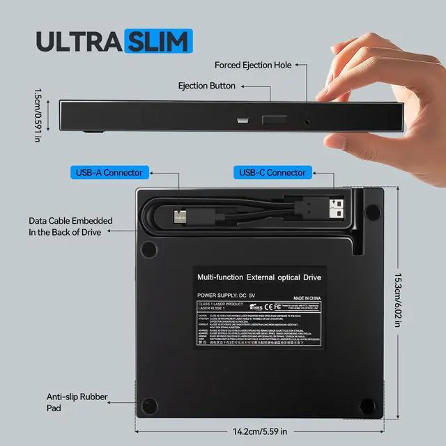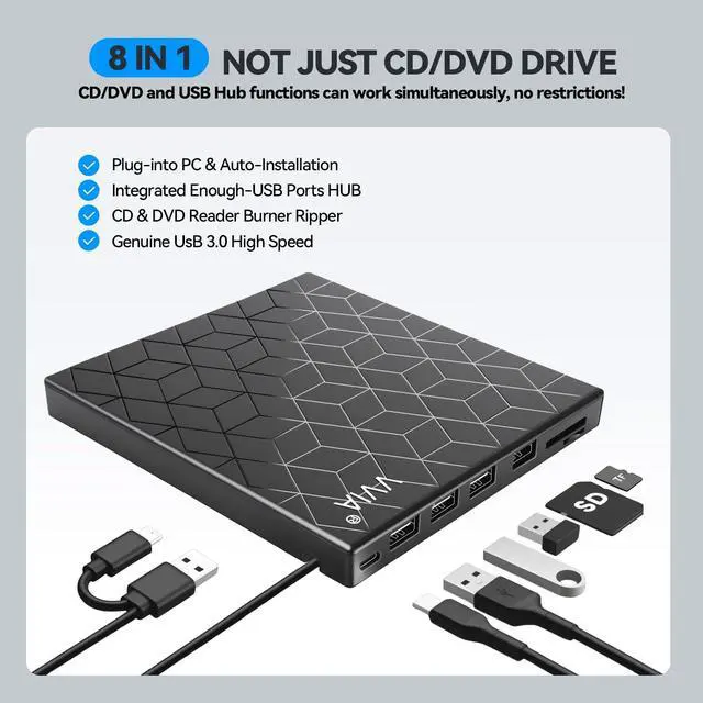 ^^ Multimedia Capabilities: Read and write DVDs, CDs, and Blu-ray discs with ease, perfect for data backup, media playback, and more.