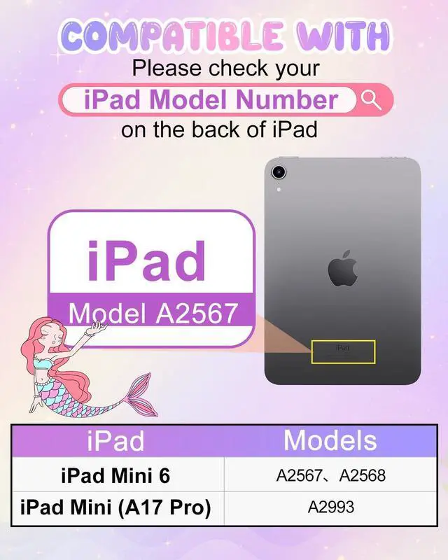 Model: This cute cartoon unicorn tablet case is designed specifically for iPad Mini A17 Pro 2024(Model