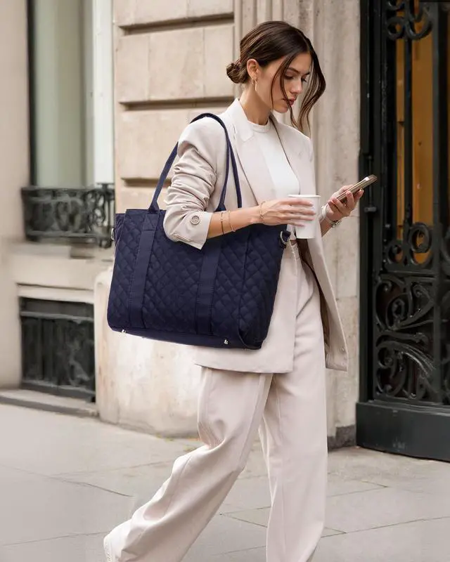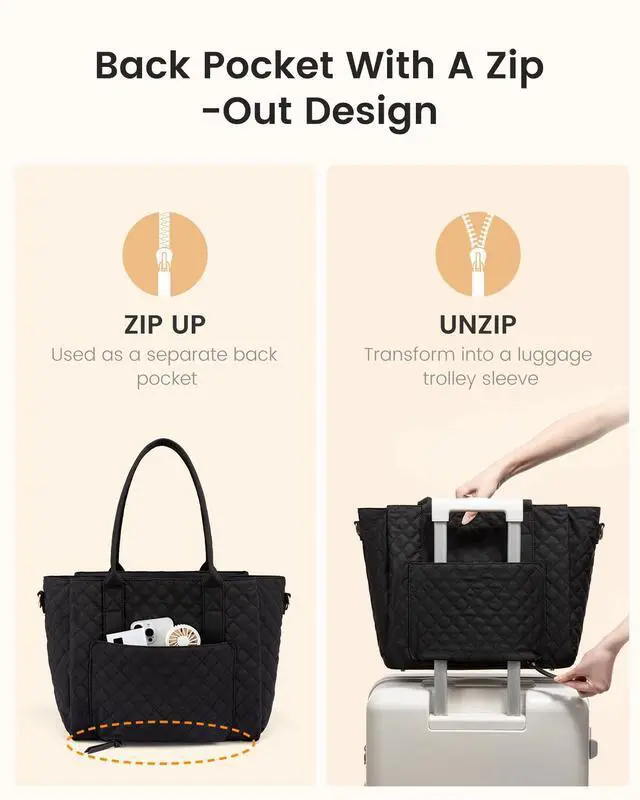 ^^ Versatile Laptop Tote Whether you're a teacher bag, nurse bag, or business professional bag, this work bags for women easily adapts to various life situations. Whether carried by hand, over the shoulder, or across the body, the flexible carrying style allows you to easily adapt to various situations, including work, school, and travel, ensuring you always have a unique personal style. ^^ Safe and Convenient DesignDesigned for convenient travel, this laptop bag features an integrated luggage cover that easily attaches to a luggage trolley, keeping your hands free.