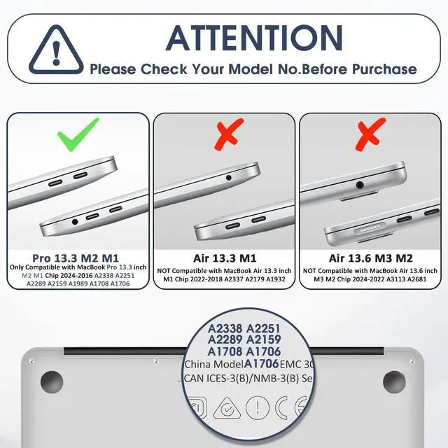 Allows your MacBook Pro 13.3 inch to open more than 90 degrees and allows full access to all functions. ^^ Complete Protection Set - 2019 macbook pro 13 inch case includes soft color-matched keyboard cover & protective screen protector in package. All thses cases we provide 1 year warranty, please feel free to contact us if you have any question.